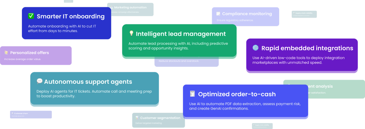 Legacy iPaaS measures dev time in months. Now, quickly prototype apps and adapt to new AI capabilities in minutes with our AI Palette.