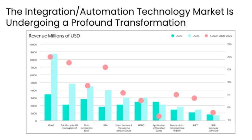 The global iPaaS market is expected to reach nearly $9B by 2025. Image courtesy of MarTech.