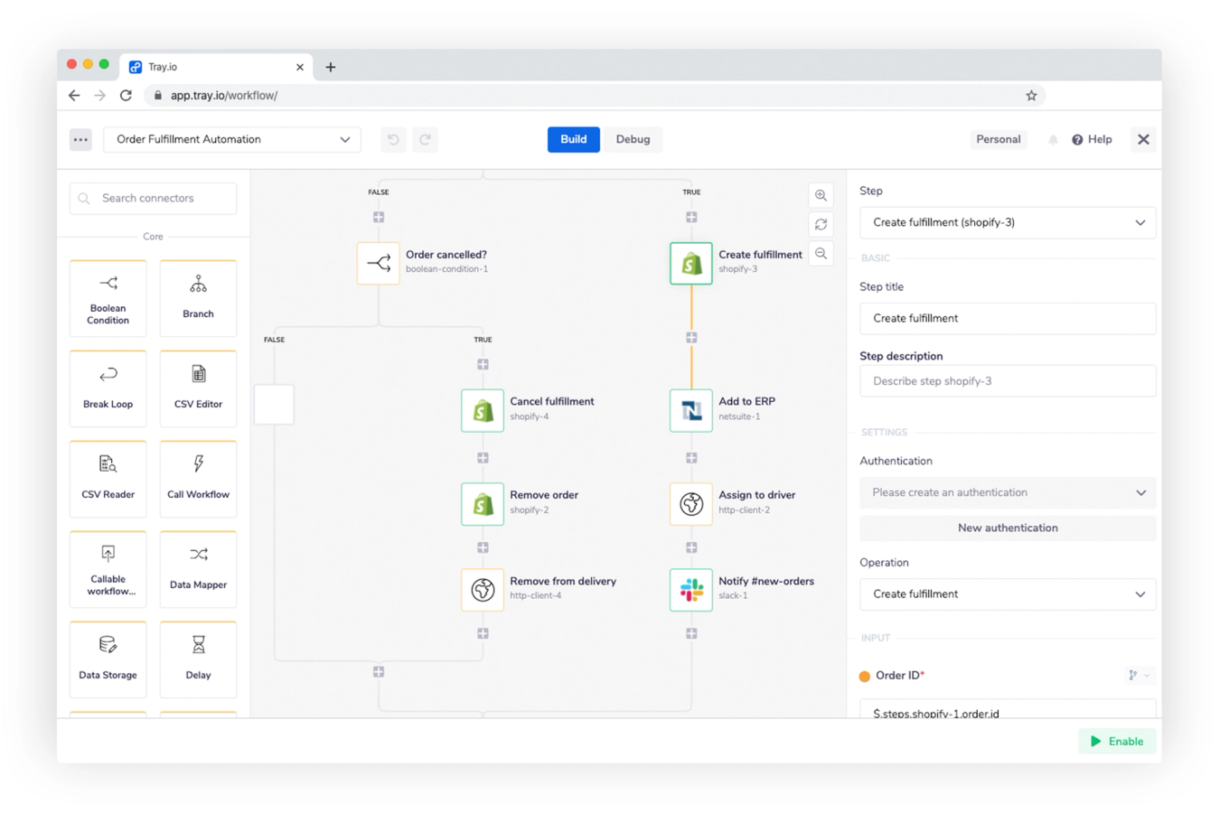 Assign to driver - We also add this order to our logistics system to manage shipping and delivery. In this example, we’re integrating with a route optimization software that uses customers’ shipping details from our e-commerce platform to map the most efficient routes for our delivery team. We can connect to this software and virtually any other tool with a data source using Tray's CDK.