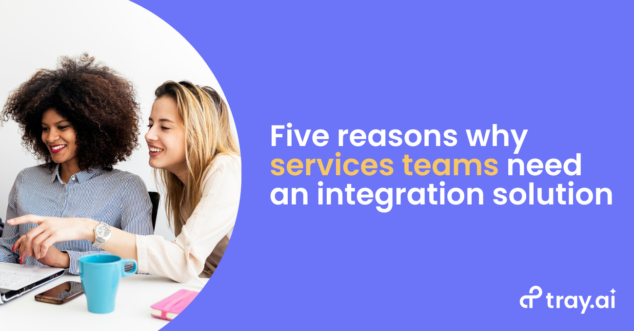 Services teams are using Tray today to deploy powerful integrations directly to their customers as pre-packaged solutions. Want to learn more? Sign up for a 1:1 demo to see how you can deliver customer integrations faster, incredibly efficiently, and at any scale.