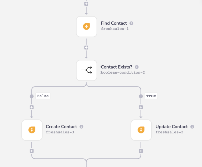 freshsales-update-create A search is made for an existing contact in Freshsales using the lead’s email address as the unique identifier. If a Freshsales contact exists, update the contact record. If a Freshsales contact does not exist, create a new contact record using the standard object