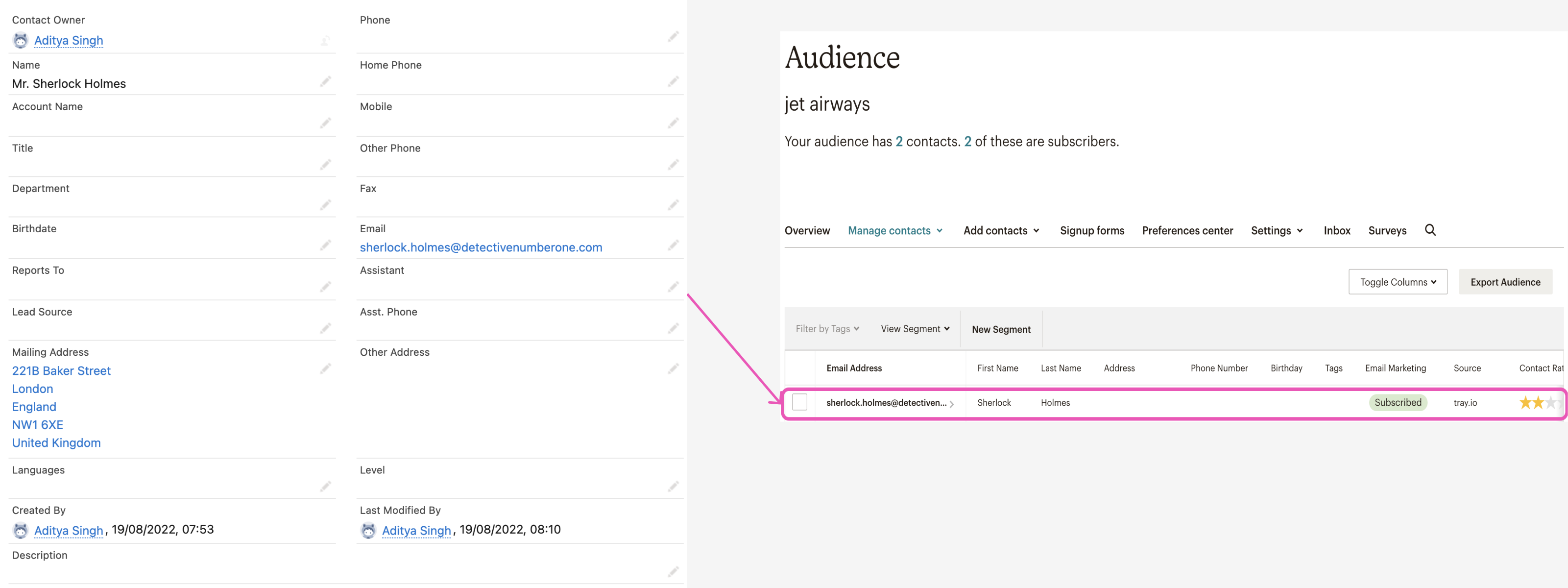 When a new Salesforce contact is created, manually updating the contact details in your marketing platform like Mailchimp is a time-consuming process. Relying on manual data entry leaves space for human errors. This template automates the process and eliminates any errors that might occur, by: