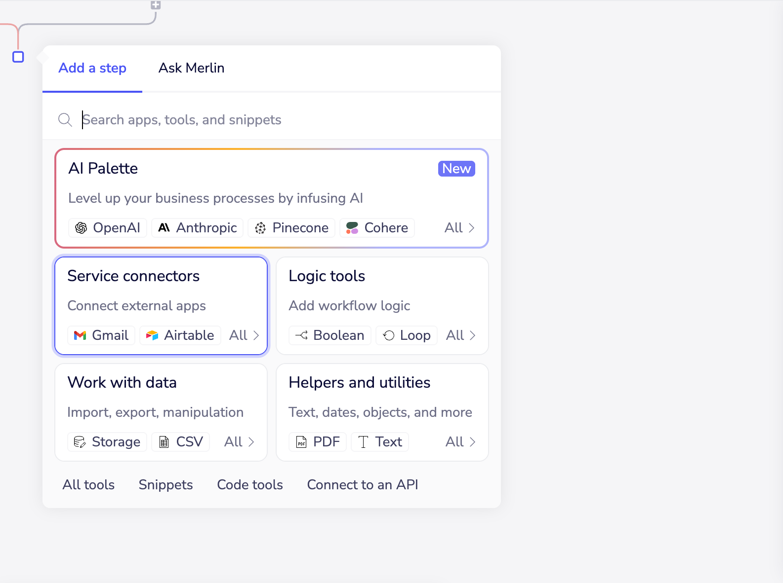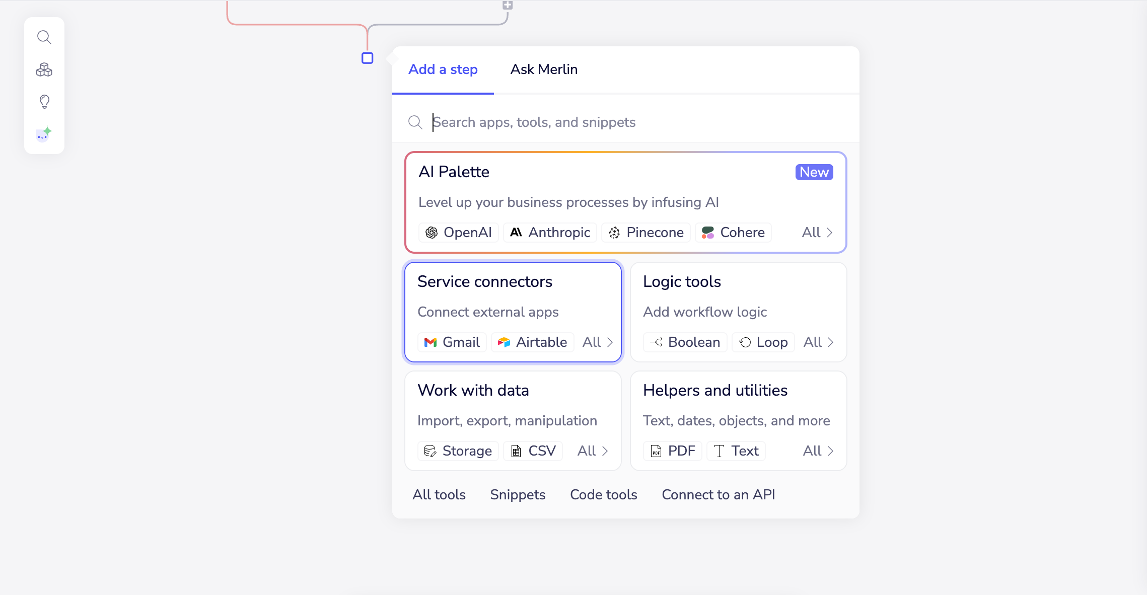 Trigger workflows from app events, webhooks, schedules, or S/FTP file drops supporting enterprise system integration across applications and data platforms. Use native connectors to SaaS applications, databases, LLMs, APIs, and data warehouses such as Snowflake, Databricks, BigQuery, and Redshift. Map fields and define how data moves within the workflow.