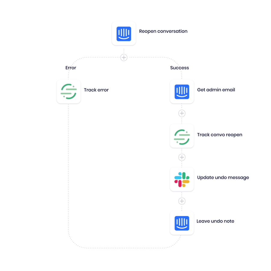 Outcome: Reverses outcome of Stage 2, restoring the conversation in Intercom and updating any records