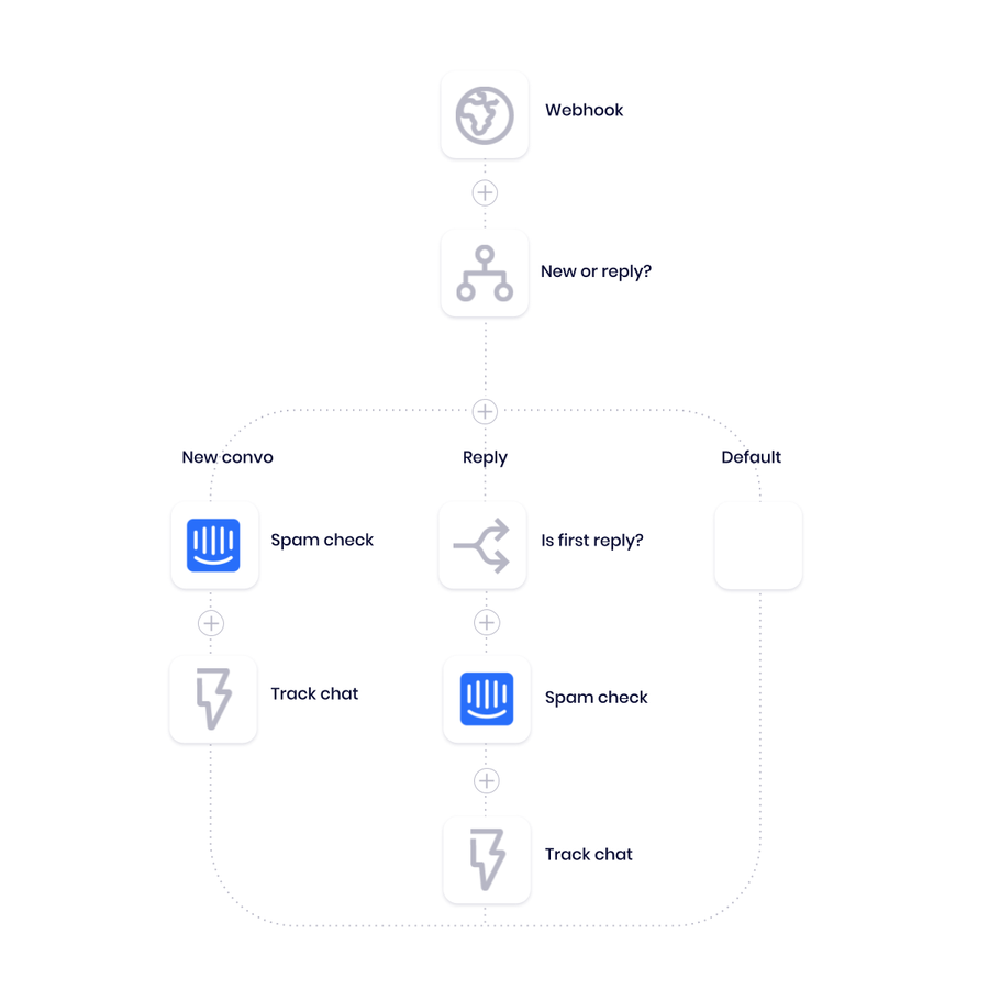 - Routing new conversations and replies from Intercom - This first part of our automated process lays the foundation for our spam check by segmenting incoming messages as being either net-new or part of existing conversations.