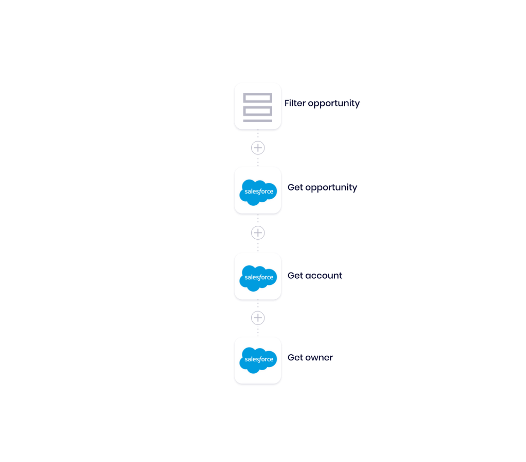 3. Adding detailed opportunity information - Then, the workflow references the Salesforce opportunity information related to the call, pulling all of the context a sales rep might need to pursue next steps with the prospect.