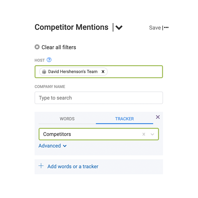 Gong.io: In this example, we’ll use the conversation intelligence platform Gong to record and dissect our sales calls. Gong uses AI-based language tracking to identify when a prospect mentions a competitor by name.