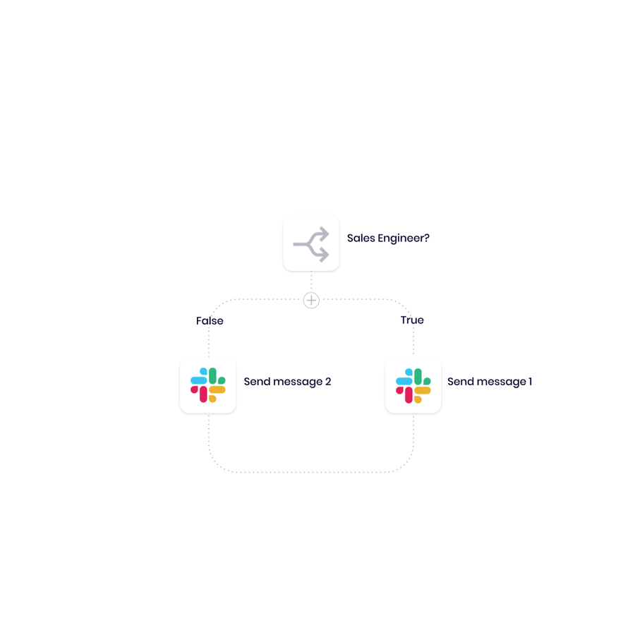 1. Initiating our workflow and identifying CRM context - This stage covers the webhook trigger that we use to initiate the workflow as well as our first Boolean “true/false” statement that ensures the correct sales calls are tracked.