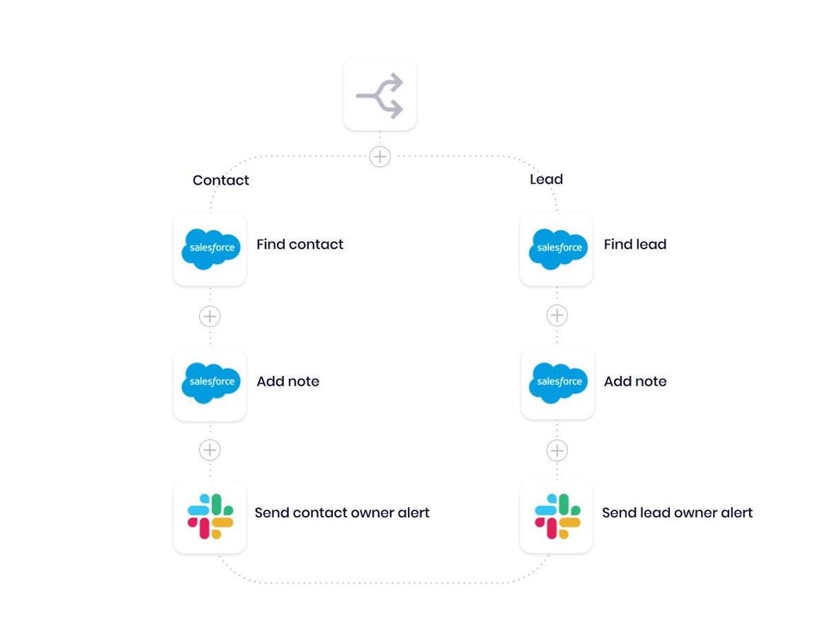 Once we’ve determined the CRM record type, our workflow uploads the trade show notes and sends an alert to the owner.