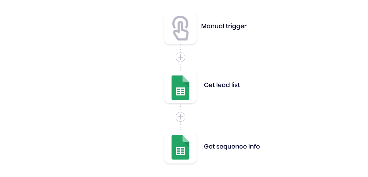 When an end-user initiates our manual trigger, it alerts our workflow that we have a new sheet of leads to add and kicks off the additional logic: