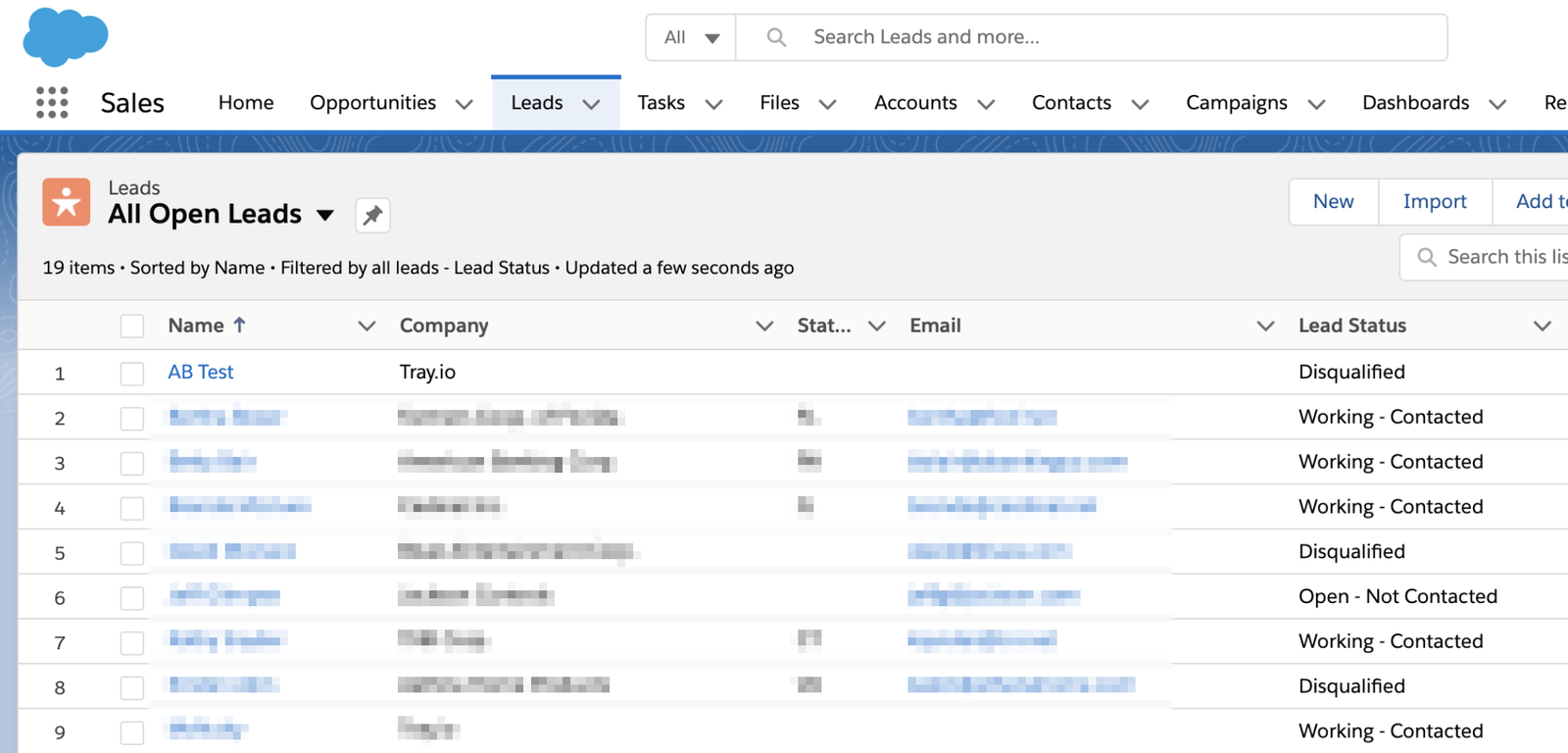 Get disqualified leads - Then, we call Salesforce again to retrieve the recently updated records that are marked as disqualified.
