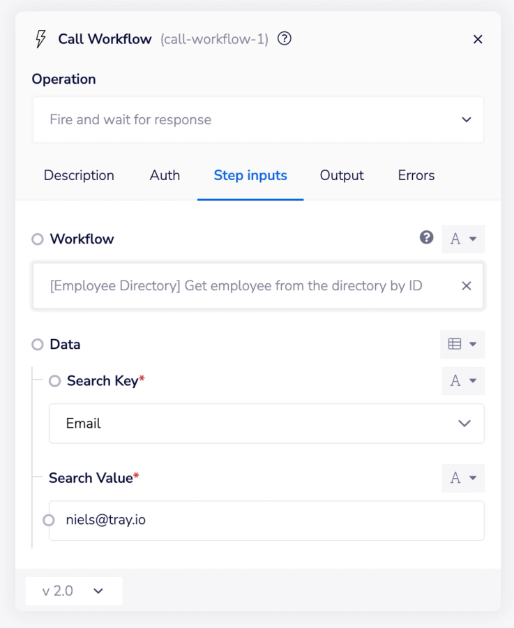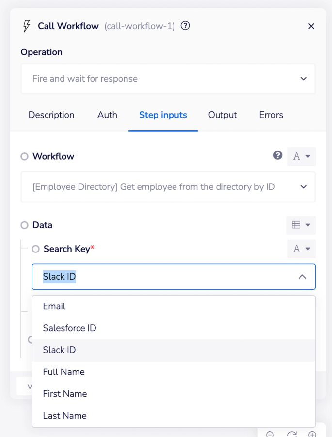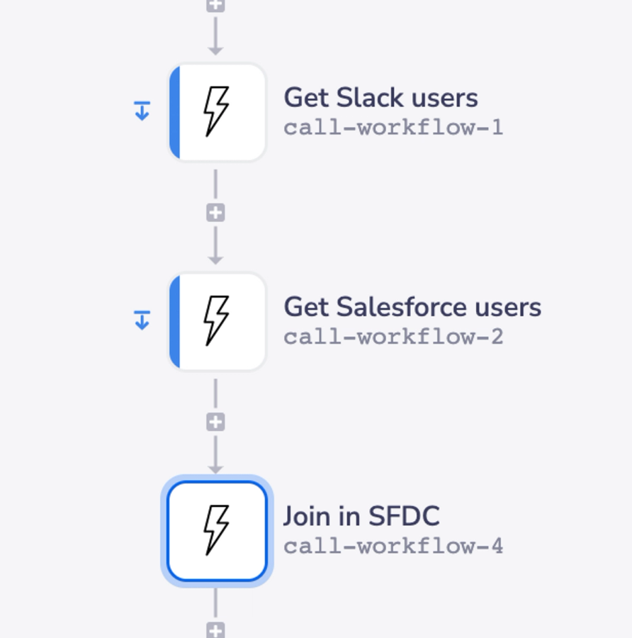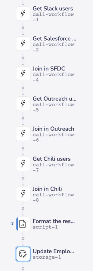 Here at Tray, one of our favorite lookups is our employee directory callable. Each employee has a directory entry with basic information like their name and email, as well as user IDs for the systems we commonly build automations around, like Salesforce and Slack.