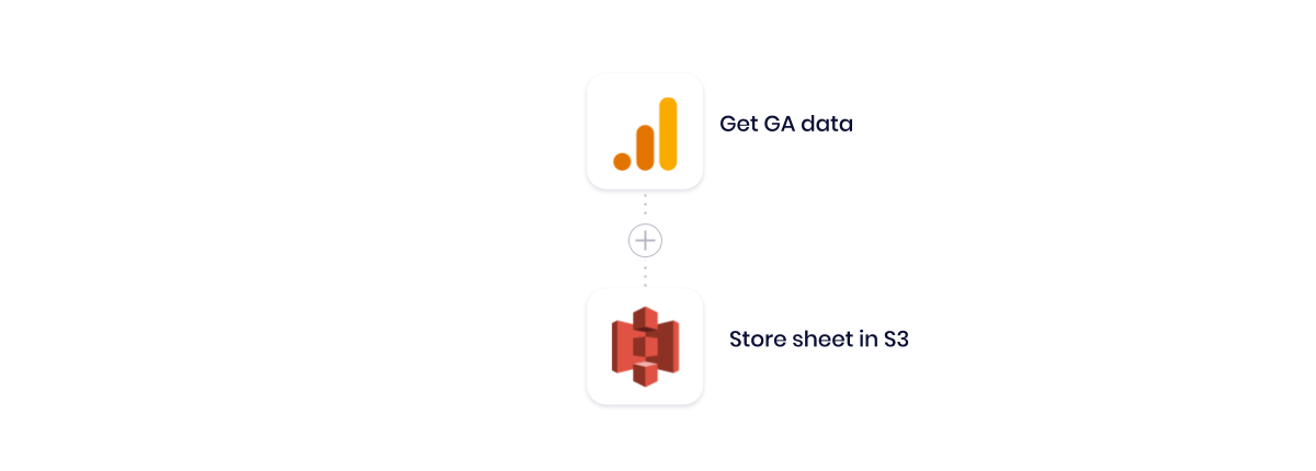 Our workflow first calls on Google Analytics to get a new list of website performance data (such as pageviews, clicks, conversions, and bounce rate) from a set period. Then, it stores our sheet in S3, which we can easily access at a later date via a PUT request.