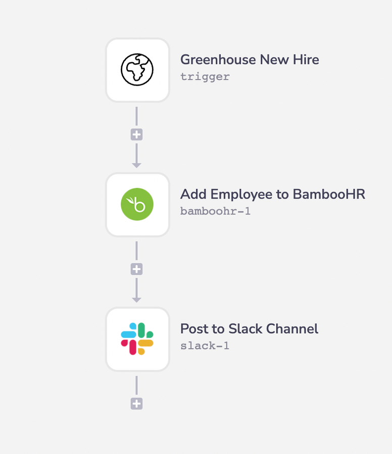 What it does: Automatically set up new hires within BambooHR – a cloud-based human resources (HR) software service for small and mid-size businesses. once they have been classified as 'Hired' within Greenhouse – a popular recruiting solution. Then alert the rest of the team on Slack.