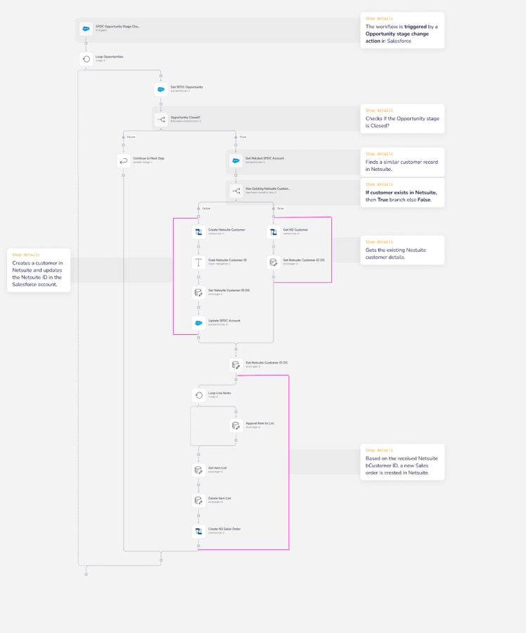 The workflow for the Salesforce to Netsuite order-to-cash template