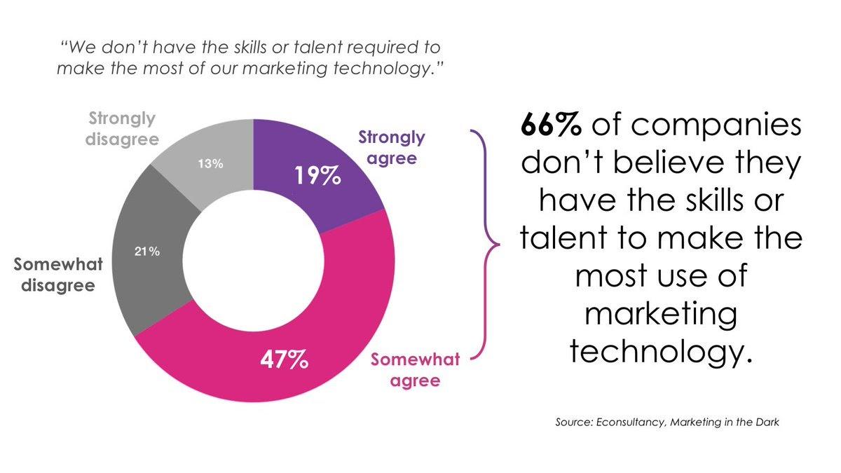 Bottom line, these gaps turn into roadblocks that cost your company serious money. The pain is even more apparent in a challenging economy, where tight budgets mean you’re expected to justify ROI while your budgets get frozen, if not cut. Here’s the harsh truth, 58% of business professionals say less than half of their applications have netted a positive ROI. Meanwhile, 66% of marketing teams don’t believe they have the skills to use their existing technology effectively.