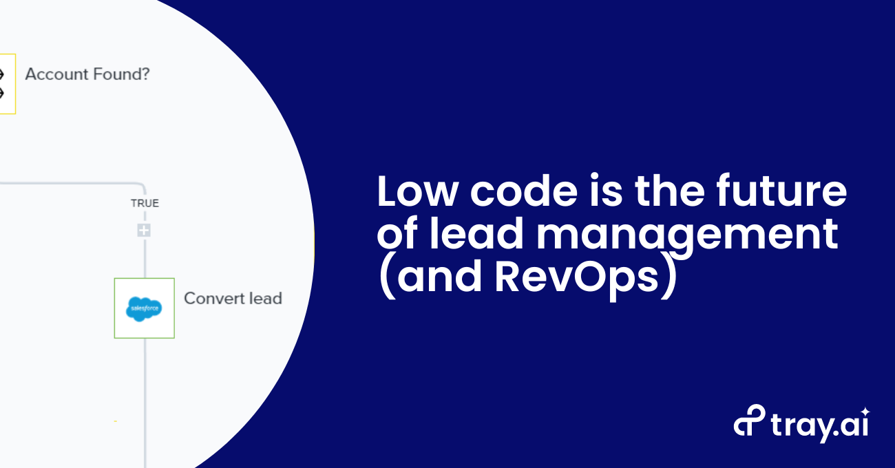 Using a lead management framework built on the Tray Platform provides your team with control and visibility into every possible aspect of your lead funnel. You can quite literally measure your funnel’s reliability and speed at every step. Meanwhile, you will prepare yourself for a future in which Citizen Automators (that’s you) build processes tailor-made to your organization’s needs, without ever having to worry again about whether your software tools “do that” or wait for engineering support.
