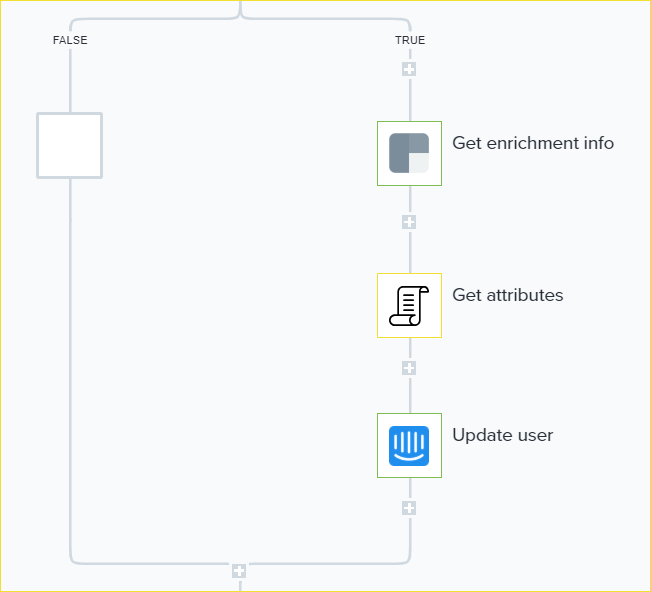 The final leg of our automated workflow enriches any leads that need it, then updates the enriched leads in Intercom.