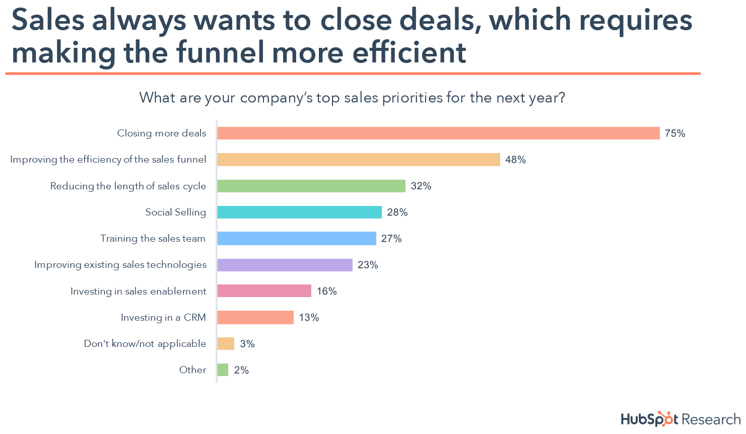 The #1 sales concern: More wins, of course. #2? Funnel efficiency. Image courtesy Hubspot.