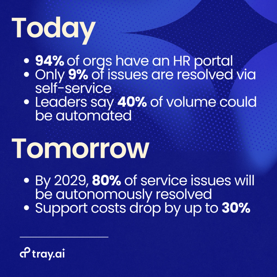This volume isn’t going away. It’s growing as workplaces become more complex. Solving it at scale requires more than portals and ticket queues. It calls for AI agents that can reason and act. By 2029, AI agents will autonomously resolve 80% of common service issues, reducing support costs by up to 30%.