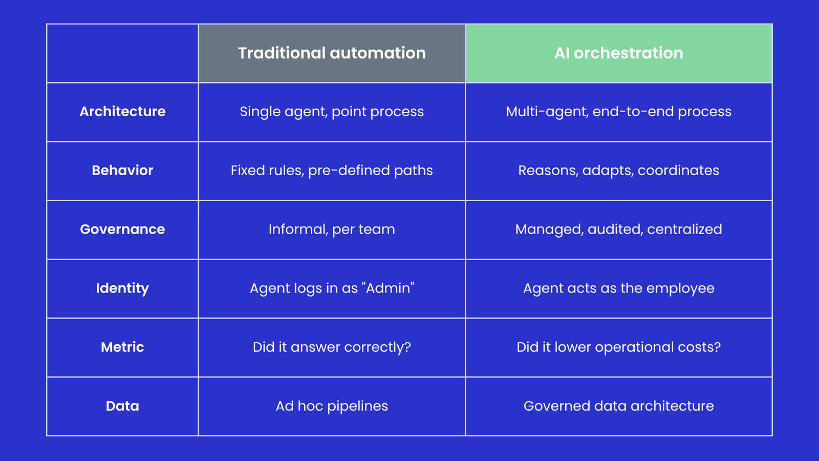 AI orchestration is a different problem. It involves coordinating AI agents, models, data pipelines, and human-in-the-loop processes across an enterprise in real time. Most enterprise AI programs started with a single agent doing a single job. That was the right place to start. But production AI at scale involves multiple agents coordinating across systems, handing off context, sharing tools and data, making decisions that affect each other. The integration layer underneath needs to be fast, reliable, contextually aware, and governable in ways that older architectures weren't designed for.