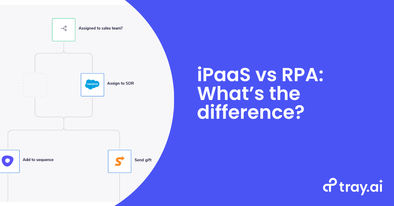 Work is work. But when over half your time is spent on tedious, manual tasks and processes, that’s when work actually gets in the way of your job. In order to focus on more strategic projects and the big-picture, business leaders are looking to automation technologies that connect applications and eliminate manual tasks. Typically, the search leads them to iPaaS (Integration Platform-as-a-Service) or RPA (Robotic Process Automation) platforms.