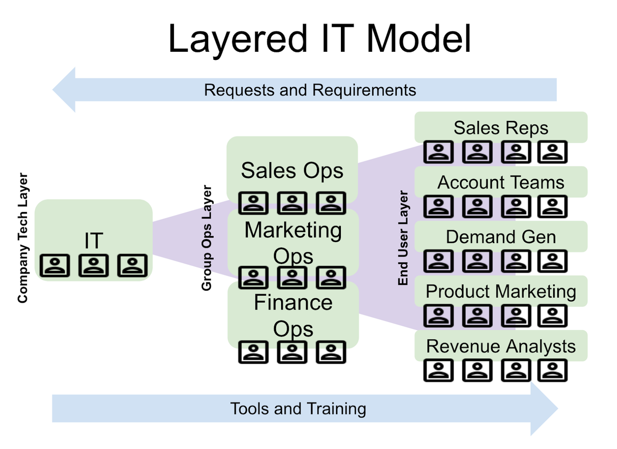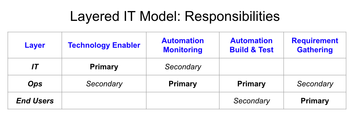 A layered IT model makes IT the enablers for an ops layer and an end user layer.