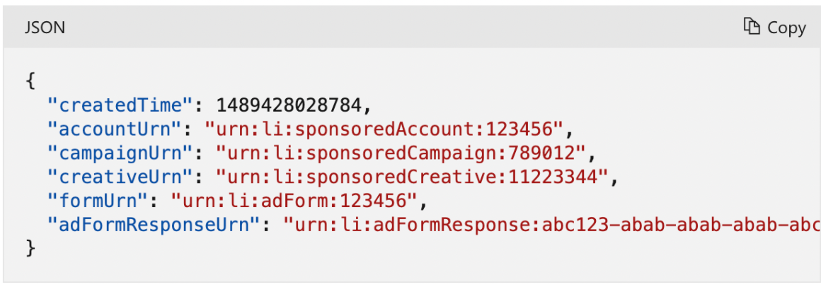 Ad Forms also have various sub-object schema, including those for forms, questions, hidden fields, and consents. For more details on those schemas, check out LinkedIn’s documentation.