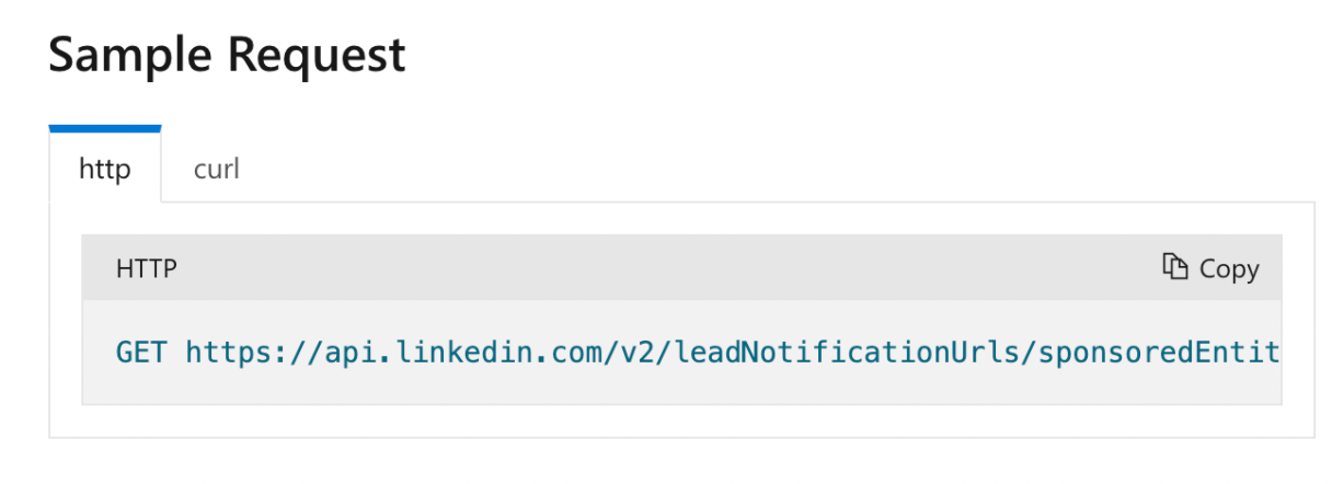 Note that you must have an access token with the r_ads_leadgen_automation and r_ads permissions to use lead gen APIs. Lead gen APIs are also part of the LinkedIn Lead Gen program, which is separate from the Marketing Developer Platform, so access to the Marketing Developer Platform doesn’t automatically grant access to lead gen APIs. (Note: You must apply separately to be considered for access.)