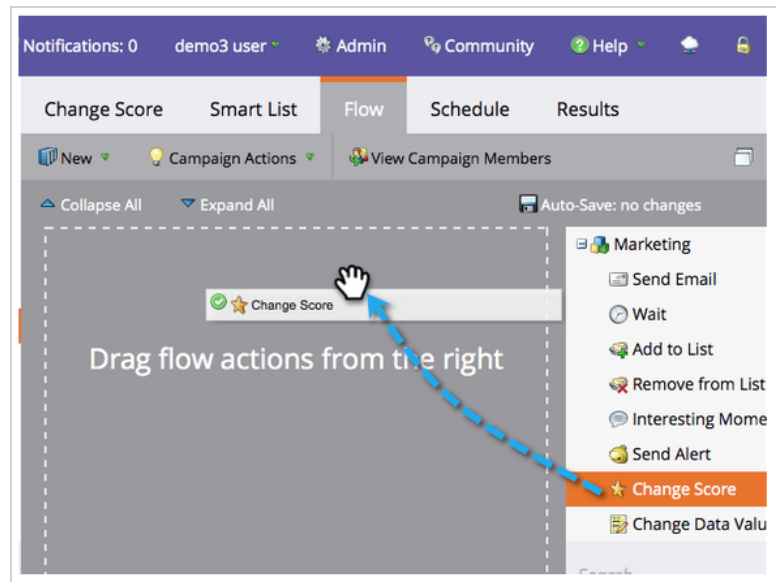 3. Name the form, and then in the “Flow” tab, drag “Change Score” from the right into the gray box: