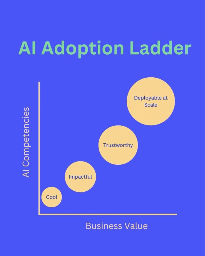 The AI Adoption Ladder is more than just a concept; it's a roadmap for transforming your business with AI. The next step is to build trustworthiness in AI applications. This involves delving deeper into AI functionalities and ensuring that AI-driven solutions are reliable and robust.
