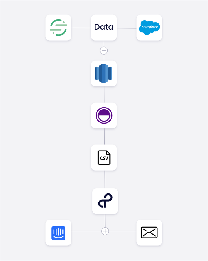- AI-ready iPaaS: AI-powered iPaaS offers powerful and flexible technology that can deeply integrate all of the above to bi-directionally sync customer data to and from any database in your tech stack. (It also fills in the gaps between a CDP’s website-level event tracking and customer events that happen elsewhere.) iPaaS can then flow that refreshed customer data among any external customer outreach, whether that be through email, a messaging application, or another channel.