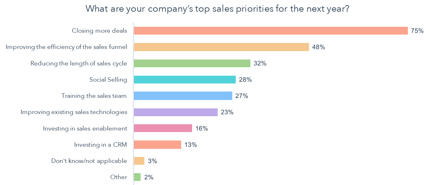 The top priority of sales orgs is still closing more deals.
