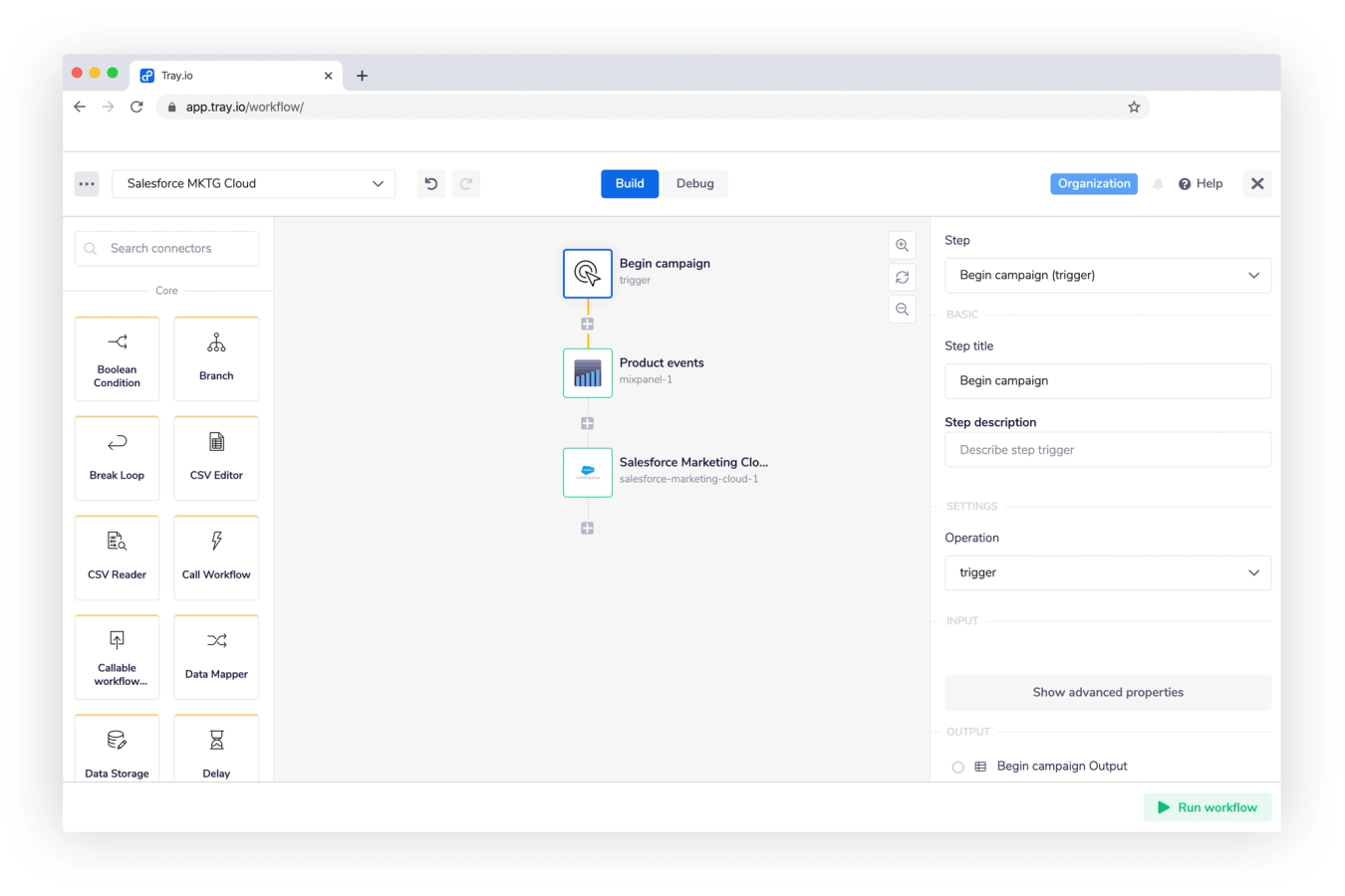 What does the Salesforce Marketing Cloud connector mean for you? You know that Salesforce Marketing Cloud already lets you build out marketing campaigns for a variety of audiences across the full customer journey. However, using the Tray platform connector lets you seamlessly flow marketing and campaign data between your instance and additional tools in your stack to scale campaigns more quickly, without having to manually copy-paste data from lead records or from individual campaigns. In other words, you can use the Tray Universal Automation Cloud to not only automate marketing campaign deployment, but also close other gaps across your MarTech stack.
