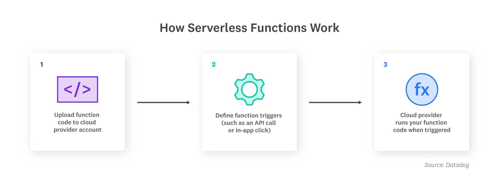 Here’s how serverless workflows work: Developers write code as a discrete list of functions, and each function performs a specific task in response to an event trigger, like a form submission or HTTP request. Devs then deploy their functions and triggers to their provider, which runs the functions on a running server (or spins one up if none are available). Technically, when developers aren’t running any functions, no servers need to exist to support them.