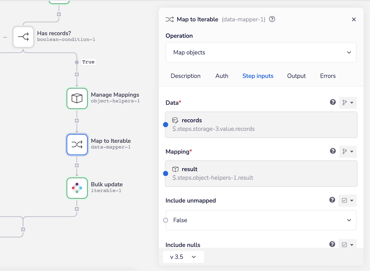 We can easily take the nested object structure returned by our SOQL relationship queries and turn it into the nested object structure for Iterable using the Map Objects operation from the data mapper helper.
