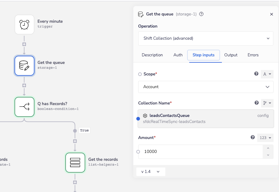 The output of this step will contain each of the record data we’ll be syncing, along with some meta data related to the queue entry, looking something like this: