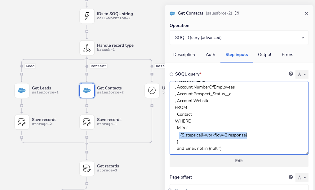 A manually triggered workflow is triggered to get multiple pages of lead or contact records from Salesforce as quickly as possible (we don't have all day after all) to be backfilled.