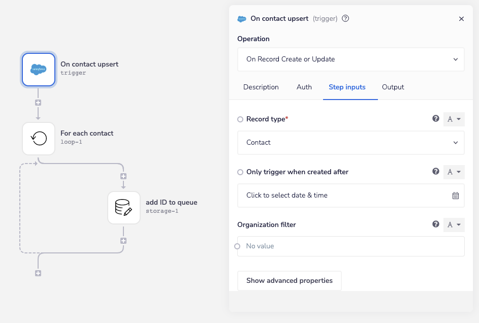 Notice we’re sending both lead and contact records out of the same queue, differentiating them with the recordType