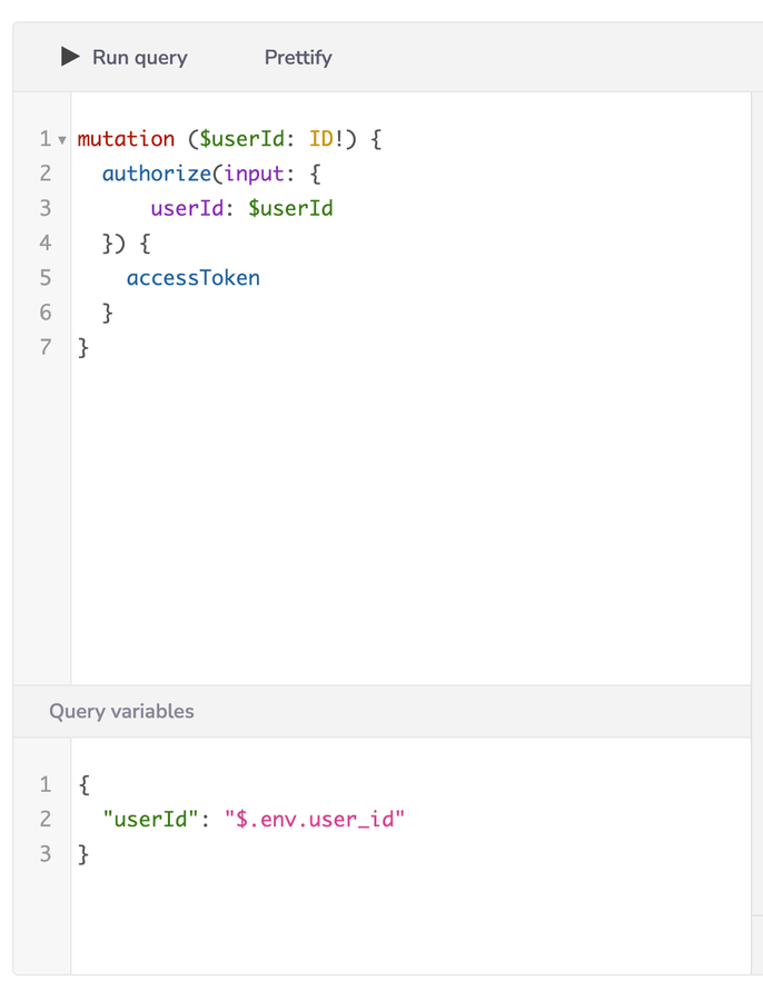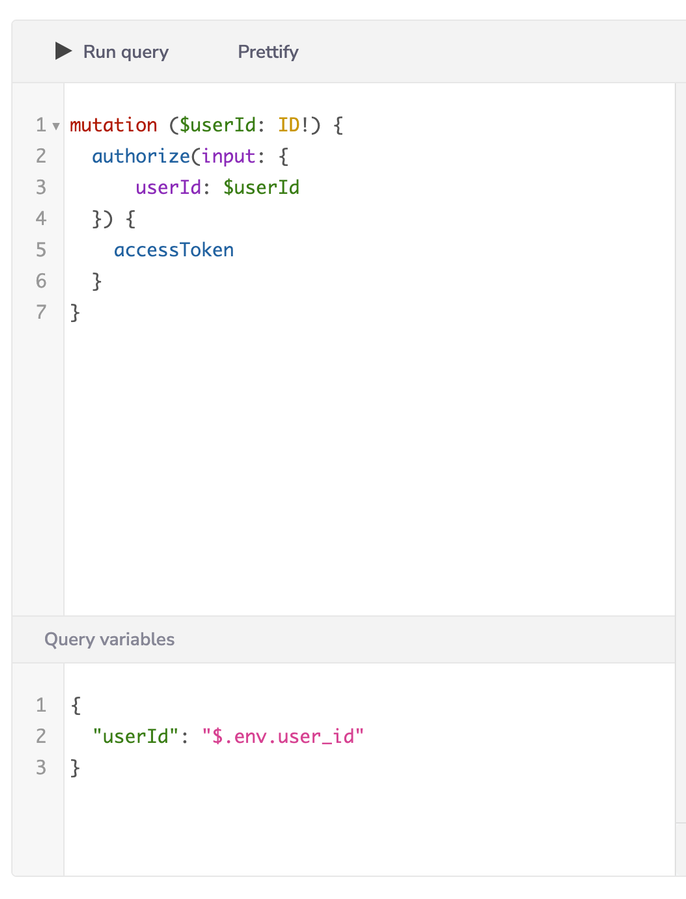 You will need to retrieve the Tray User ID to pass into the GraphQL mutation. To do so, you will reference the env property to gain access to that ID. You can read more on what is available in the env property in our documentation here.