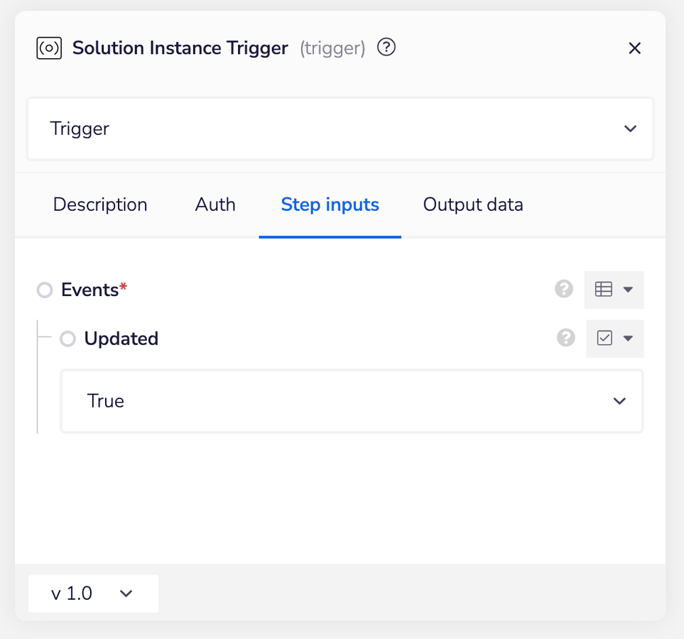 These events can occur when you programmatically update the solution instance via the Tray Embedded GraphQL API or when your end-user runs (or re-runs) through the Config Wizard.