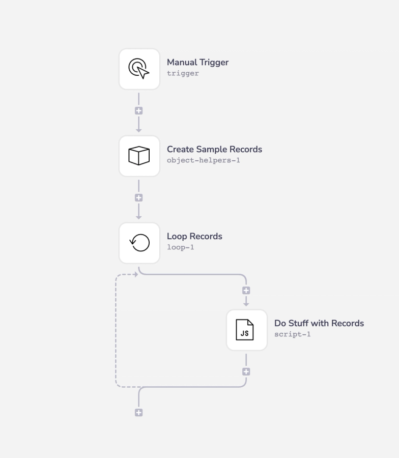 properties. The result of this step is a JSON object that can be used in our for loop. For the sake of the example, we created this using the Object Helper. However, this data could be coming from any service.
