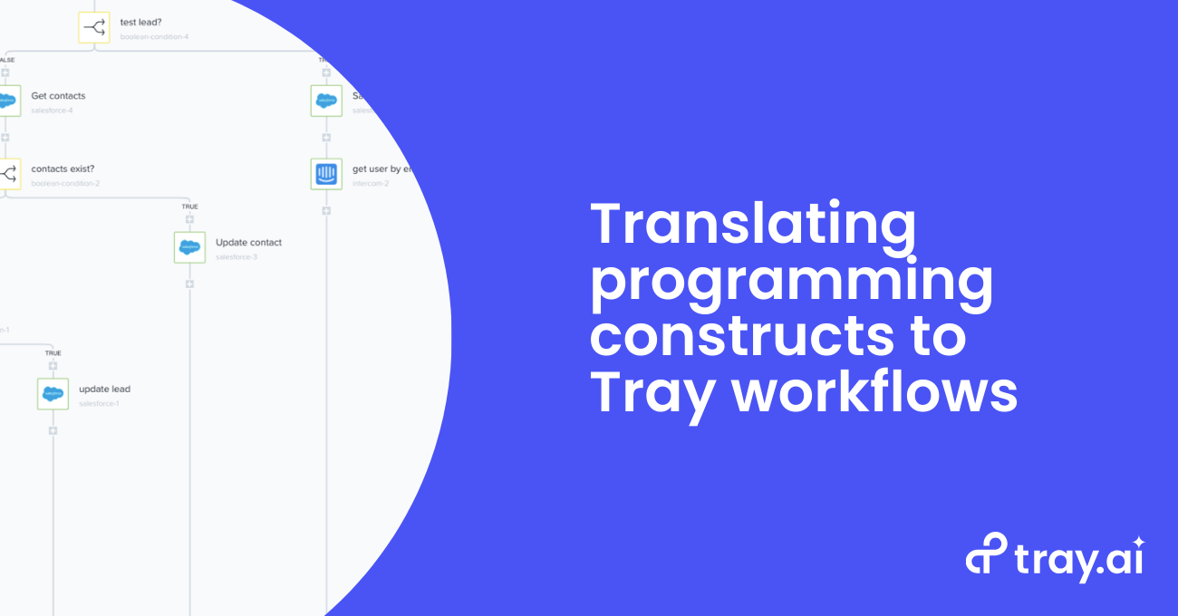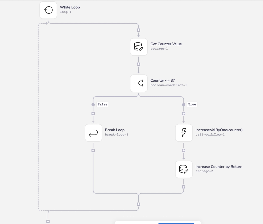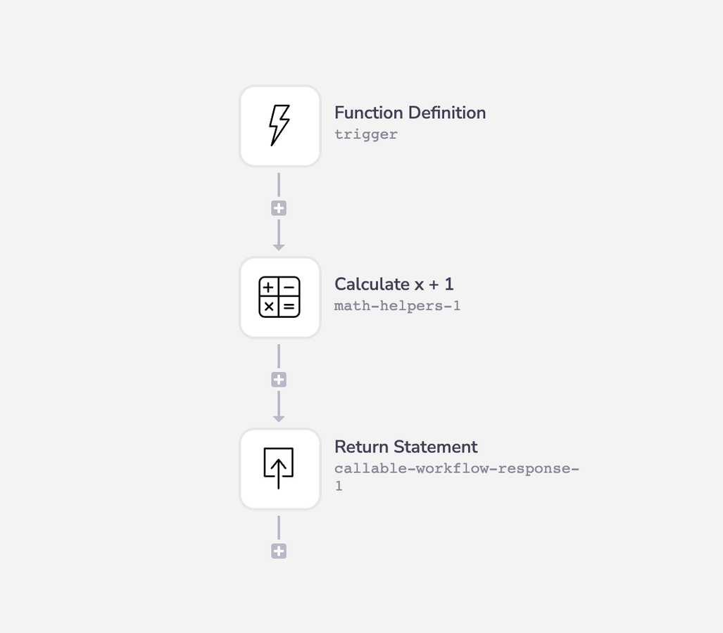 To create a function in the Tray platform, we need to create a workflow that is triggered by the Callable Trigger connector. You are able to define the parameters on the function directly on that trigger. In the Tray platform, the parameters are defined as Input Schema. In this example, we are using the Call Workflow connector in the while loop to call a function to increase the counter used in the conditional of the while loop. The Callable Workflow Response simulates the return statement in the function.