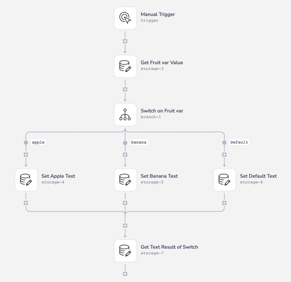by default. This variable that is used in the switch statement can come from any service. For the sake of the example, we created it in a Data Storage connector step.