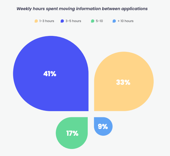To make matters worse, the same report found that more than 60% of respondents spent more than three hours per week on manual data workarounds (with 26% spending more than five hours per week). In other words, your customers spend countless frustrated hours having to compensate for your product’s lack of integrations, rather than engaging productively with your product and gaining value. This is why, instead of using their own resources to bridge their gaps, customers are increasingly expecting interoperability between your software products and the key components of their tech stack, right out of the box.