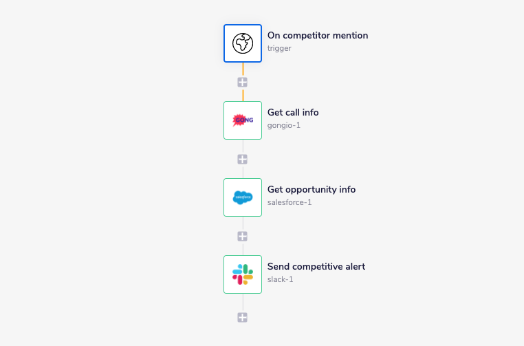 Luckily, we can use Tray to pull competitor mentions from your sales conversations into Slack: